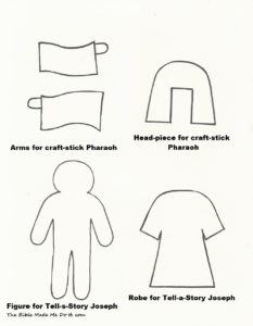 This is a super-quick bookmark to make. It is made from the wooden “stick-people” doll available in craft stores. You can also make your own doll from cardboard, using the pattern below which is titled “Figure for Tell-a-Story Joseph.”