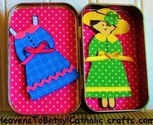 Because St. Clare was born into a very wealthy family, she had an extensive wardrobe! You could even say that she was a bit of a fashionista! After she gave her life to God, however, she was no longer interested in fashion. She was interested only in pleasing God. Using the pattern below, have fun designing a wardrobe for Clare as a young girl. By lining an Altoid tin with pretty paper, you can make a nifty container for Clare’s outfits. You can even tote it around in your pocket!